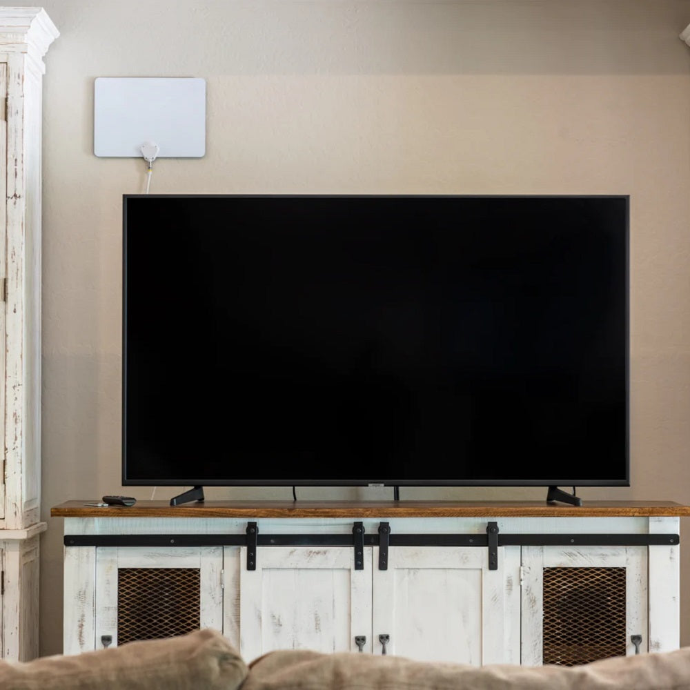 TV antennas are making a comeback now that more channels are available for free over-the-air and since the high-definition (HD) picture quality of over-the-air is better than cable and satellite. With so many options on the market, the FLATenna was designed to make the buying decision easy for those that are new to over-the-air or who have little to no knowledge about antennas. All you need to know is that the FLATenna receives the highest quality signal technically possible in an antenna of its size, it's inexpensive, reliable and the trusted Channel Master brand has been around since 1949. The FLATenna is a great starter antenna for anyone who is not capable of installing an outdoor antenna, apartment dwellers and virtually anyone seeking a solid indoor TV antenna but not looking to spend a lot of money. The FLATenna is a thin, durable, non-amplified indoor TV antenna, able to receive digital broadcast signals from 35 to 50 miles from towers.