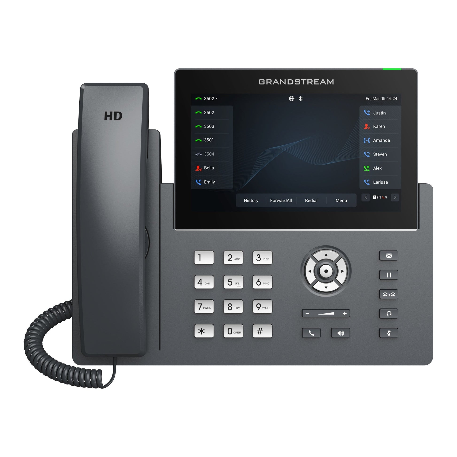 Part of the GRP series of Carrier-Grade IP Phones, the GRP2670 is a professional 12-line model with a 7" (1024x600) TFT color LCD. Designed with zero-touch provisioning for mass deployment and easy management. It features a sleek design and a suite of next-generation features including: 5-way voice conferencing to maximize productivity, integrated PoE & Wi-Fi, full HD audio on both the speaker and handset to allow users to communicate with the utmost clarity, EHS support for Plantronics headsets and integrated USB headset support. The GRP series includes carrier-grade security features to provide enterprise-level security, including secure boot, dual firmware images and encrypted data storage. For cloud provisioning and centralized management, the GRP2634 is supported by Grandstream’s Device Management System (GDMS), which provides a centralized interface to configure, provision, manage and monitor deployments of Grandstream endpoints.