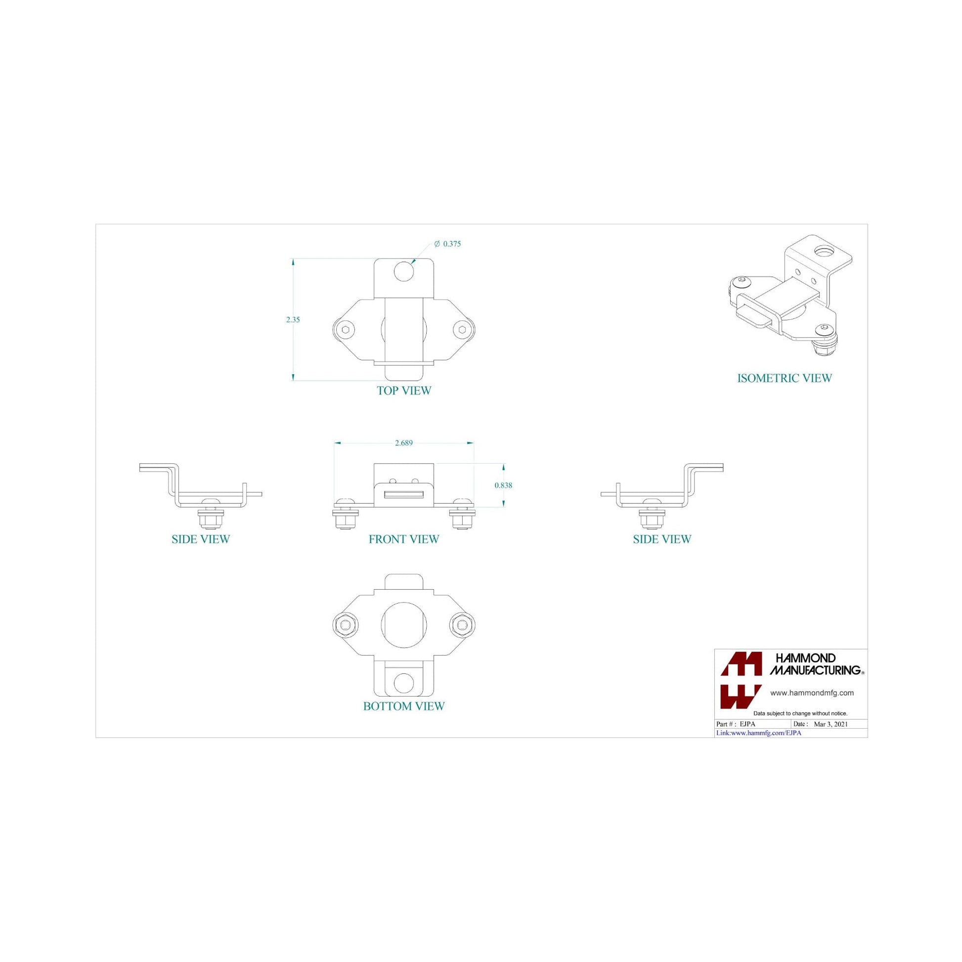 For use with Eclipse Junior (EJ) Series enclosures