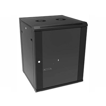 The RB-FW12 wall mounted cabinet is constructed in 16-gauge steel with smooth black powder paint finish. The rear cable access allows for a clean and easy installation of your equipment. The passive cooling vents located on the top, bottom and sides to help keep your equipment from overheating. For added safety and security, the cabinet has locking side and front panels.